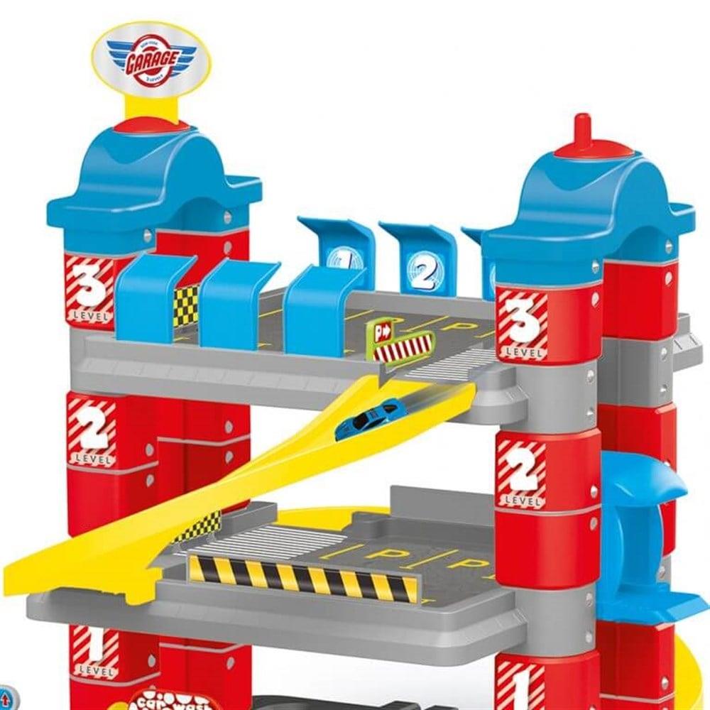 36 AY VE ÜZERİ ÇOCUKLAR İÇİN UYGUNDUR. 49 X 71 X 56 CM. ÖLÇÜLERİNDEDİR. İKİ ADET METAL ARABA DAHİLDİR. ASANSÖR ÖZELLİĞİ VARDIR. ÇOCUKLARIN ÜST KATLARDAN ALT KATLARA ARABALARINI SÜRDÜĞÜNDE ROL YAPMA EĞİLİMLERİNE YARARI VARDIR.
